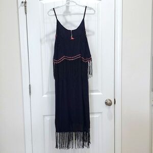 Riresort by,River Island Womans Embroidered Cami, Maxi Dress,with fringe,Med,NWT