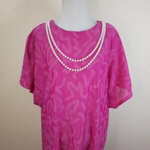 Risa Ann Vintage Midi Shift Dress Shift Size 24.5 Attached Necklace Magenta