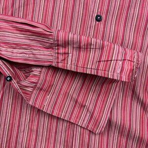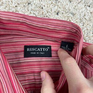 Riscatto Button Up Shirt Mens Large Long Sleeve Striped Red Made In Italy Cotton