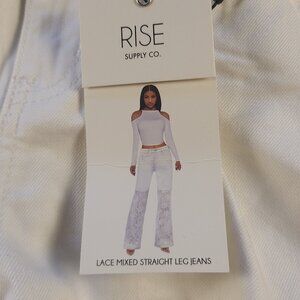 Rise Supply CO Women's 3 Jeans White Lace Mixed Straight Leg
