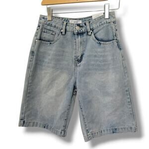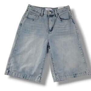 Rise Supply Co Juniors Blue Wash High-Rise Bermuda Denim Shorts Size 5 NWT