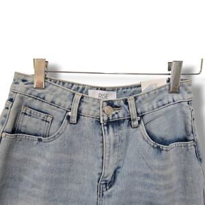 Trendy blue wash denim bermuda shorts by Rise Supply Co. ✨ High-rise fit, 100% cotton for comfort & style. Size 5 Approximate Measurements when laying flat 27" waist x , 12" Rise x 11" Inseam brand new with tags. Perfect for casual summer looks! 🌞👖