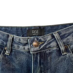 Rise Supply Co women’s wide leg jeans in size 7. Blue vintage-wash denim with a high rise and wide leg. Structured denim.