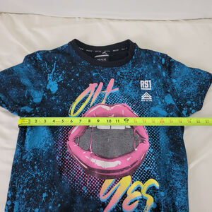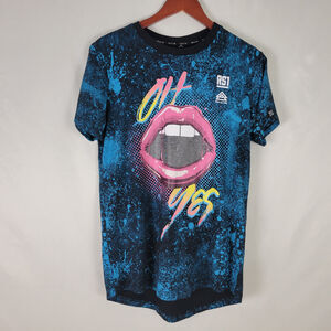 Rise as 1ne Shirt Mens Small Blue Graphic Tee Oh Yes Paint Splatter Lips RS1