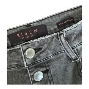 Step out in style with these Risen black wash jeans in excellent used condition. Designed with a flattering high rise fit and trendy button fly closure, these jeans feature a raw hem for a modern, slightly edgy look. Made from quality denim with just the right amount of stretch, they offer both comfort and style. Women’s size 30/11, perfect for casual wear, going out, or everyday outfits. A versatile wardrobe staple you can pair with tees, blouses, or sweaters year-round.