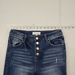 Elevate your wardrobe with these stylish blue flare jeans. Perfect for any casual outing. Super cute button fly flare, super stretchy