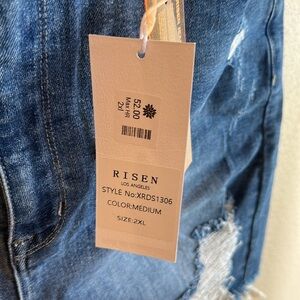 Risen Curvy Max HR Shorts Size 2XL Medium Wash High Rise Distressed NEW