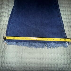 Risen Full Size High Rise Frayed Hem Flare Jeans. Size Jr 9. Dark blue. EUC