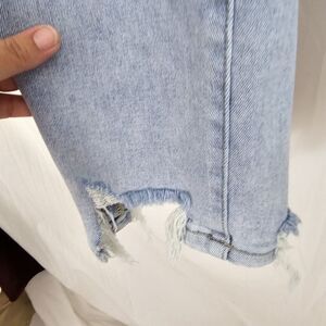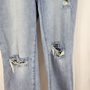 Risen High Rise Straight Crop Distressed Women's Size 29" Light Wash Shark Bite Like Hem Cross Roads Waist Excellent Pre-owned ConditionWaist 16" Rise 12"Inseam 28"