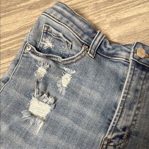 Risen High Waisted Denim Blue Women's Distressed Shorts Size M
