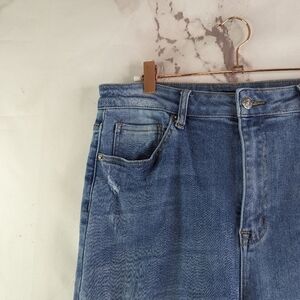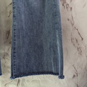 Risen Jean Womens 32 15 High Rise Flare Distressed Acid Light Wash Frayed Hem