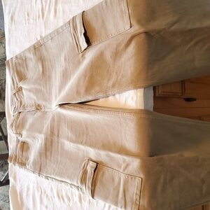 Risen Jeans Cargo Tan High Rise Wide Leg Sz 15 W32 Pants w Trendy Hem Hack