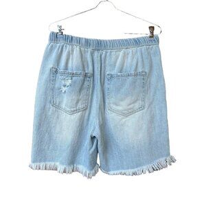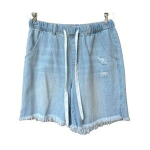 Risen Jeans Denim M High Rise Drawstring Distressed Fringe 7" Shorts