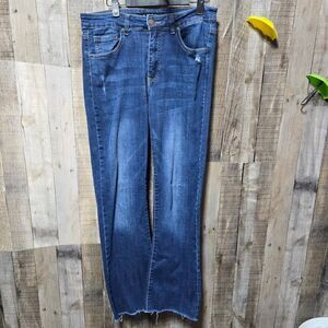 Risen Jeans Distressed Frayed Flare Jeans