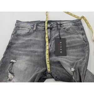 Risen Jeans Gray High Rise Distressed Ripped Skinny Straight Leg Size 32"x28"