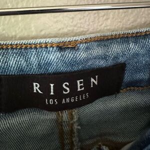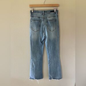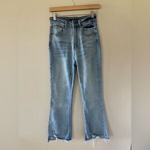 Risen Jeans High Rise Frayed Hem Medium Wash Ankle Flare Denim Jeans Size 28