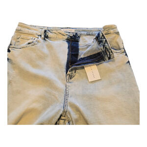 Risen Jeans Light Acid Wash Womens 2XL Straight Leg High Waist Crop Distressed