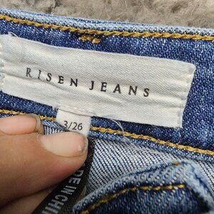 Risen Jeans Womens 3/26 Blue High-Waisted Distressed Frayed Hem Cropped