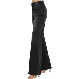 Risen Women’s Bossy Wide Leg Distressed High Rise Black Jeans