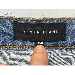 Risen Jeans Women's Raw Hem Straight Leg Stretch Denim Jeans - Size 3 (26x26)