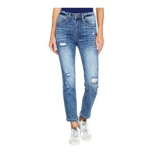 Risen Jeans Womens Straight Leg Distressed Raw Hem High Rise Stretch 11/30
