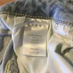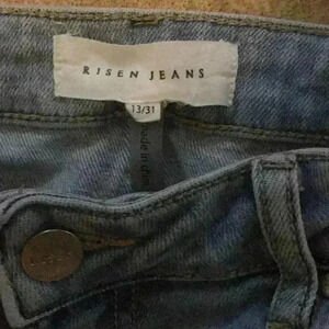 Risen Distressed Light Wash High Rise Crop Jean Shark Bite Hem Size 13/31 Denim Western Cowgirl Cropped