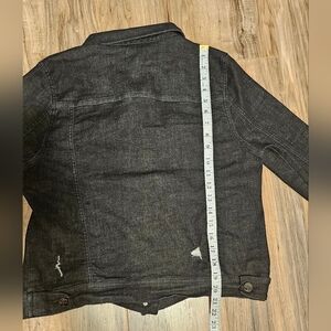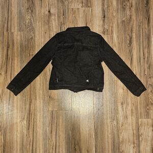 This black jean jacket embodies a classic style, ideal for everyday wear. Made from sturdy denim, it promises durability and comfort. Its versatile design makes it a staple piece for any wardrobe.