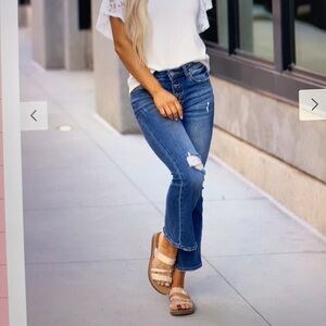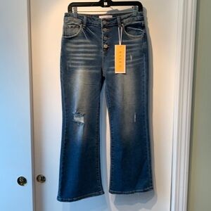 Risen Los Angeles Favorite Day Mid Rise Button Fly Cropped Flare Jeans 29