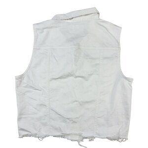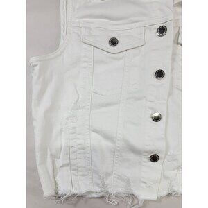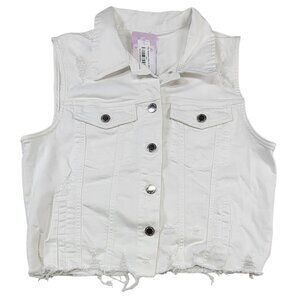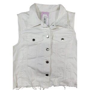Risen Madison Vest White Sleeveless Collar Button Frayed Womens Size L New
