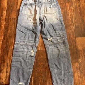 Risen NEW 3/26 High Waisted Draw String Distressed Paper Bag Blue Jeans