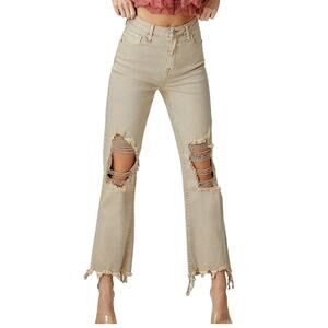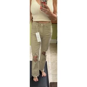 Risen NWT 26W size 3 khaki jeans raw hem high rise straight denim distressed