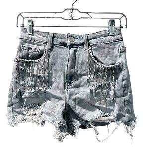 Risen Rhinestone Fringe Cut Off Distressed Denim Jean Shorts Size Small Western