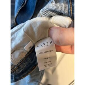 Add a trendy touch to your wardrobe with these Risen wide-leg jeans! Featuring a light wash and raw hem, these jeans offer a stylish, relaxed fit.