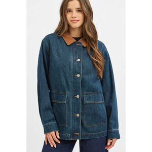 Risen Womens Size 3XL Barn Coat Denim Dark Jacket Zipper Button Up NEW