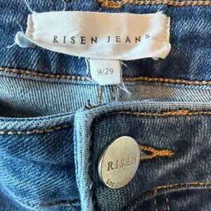 Risen High Rise Raw Frayed Hem Distressed Cropped Flare Denim Jeans Blue Sz 9/29