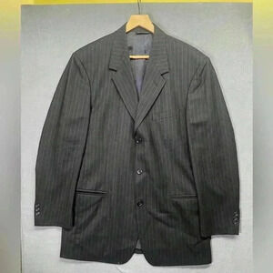 Riserva Made In Italy 100% Wool Blazer Sports Coat Mens 44R Black Pinstripe