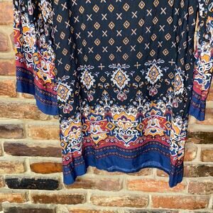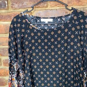 Risesun Black Printed Multicolored Long Sleeve Mini Shift Dress Women's Size Small