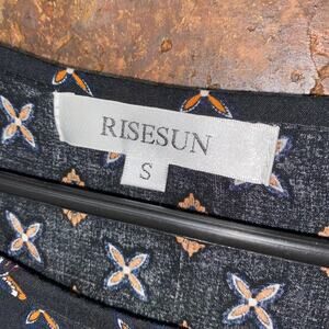Risesun Black Printed Multicolored Long Sleeve Mini Shift Dress Women's Small