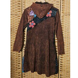 Rising International Floral Patchwork Long Hooded Boho Jacket M