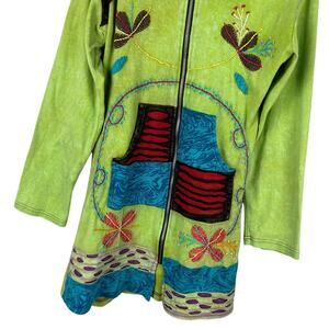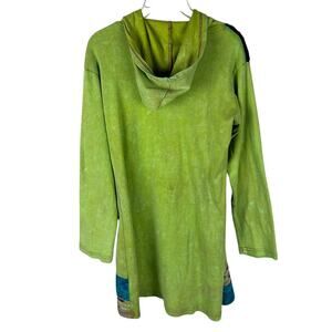 Rising International Green Boho Patchwork Hooded Long Sleeve Sweatshirt Dress L