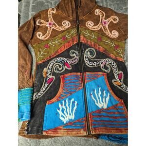Rising International Jacket WOMENS SIZE M Full Zip Hoodie Boho Rust Nepal Hippie