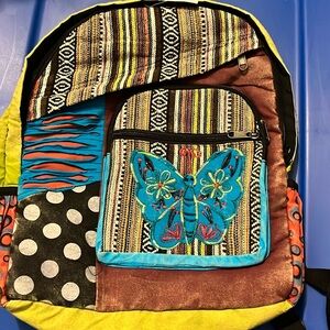Rising International Nepal Cotton Butterfly Pattern Backpack NWT