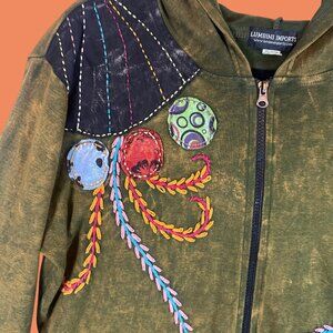 Rising International W Size XL Zip Tunic Hoodie Jacket Boho Hippie Ren Fair Art