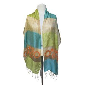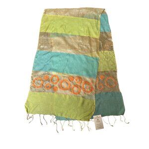 Rising Tide Handcrafted Sheer Scarf With Burnout Velvet Circles & Wide Colorful