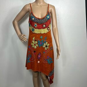 Rising International Bohemian Hippie Floral Artsy Asymmetrical Hem Dress Size S
