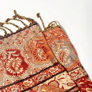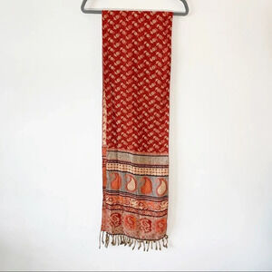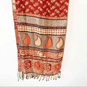 Rising Tide rectangle scarf in gorgeous fall shades. Rayon. Fringe. Made in India. Preowned.