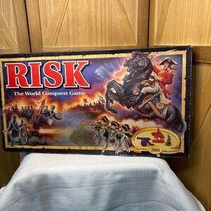 Engage in strategic battles with the classic Risk board game. Featuring vibrant red and black colors, this game promises hours of fun and challenge. Perfect for game nights with family and friends.