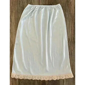 Rissa Half Slip Skirt Large Blue Retro Mod Vtg Lace Trim Nylon Pinup Cottagecore