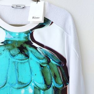 RISTO 'Doppio' Artichoke Print Panel Side-Zip Boxy Sweater.
