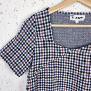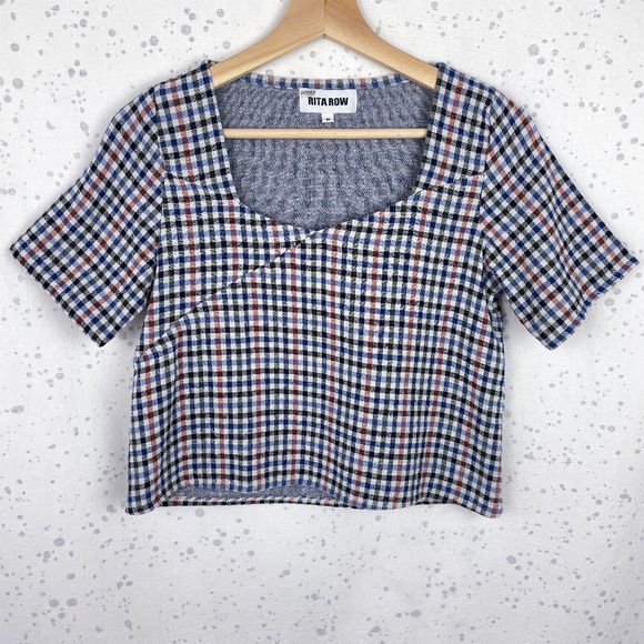 Rita Row Plaid Surplice Crop Top in Blue Multi M
